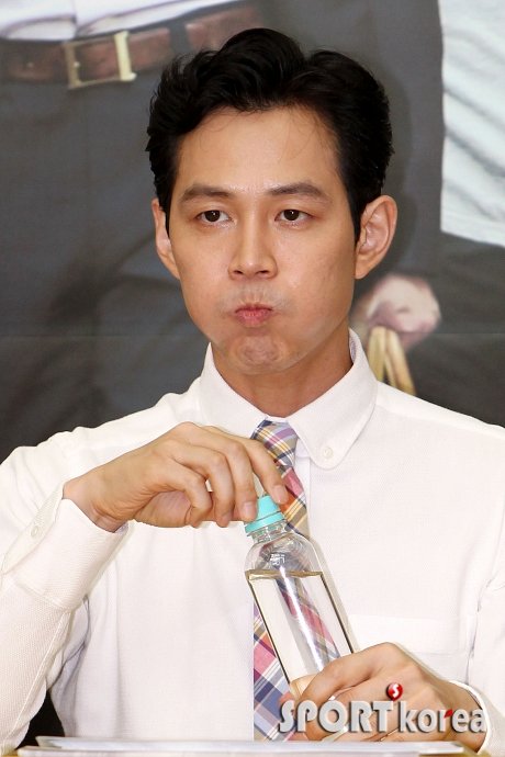 배우 이정재가 13일 오후 서울 영등포 타임스퀘어에서 열린 `도둑들 천만관객 카운트다운 행사`에 참석해 물을 마시고 있다.