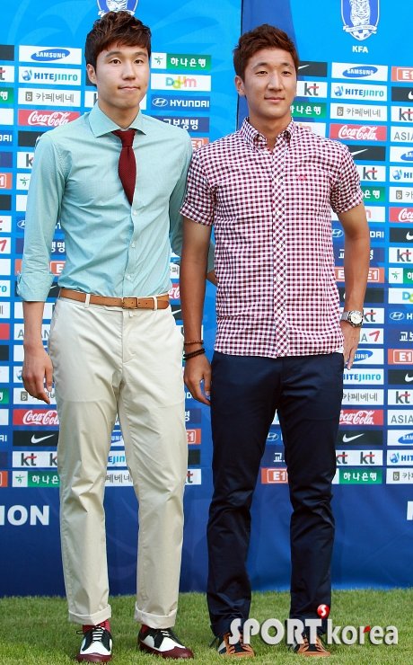 축구 올림픽 대표팀 김현성, 정우영(오른쪽)이 13일 오후 서울 장충동 신라호텔에서 열린 `환영만찬` 행사에 참석해 포즈를 취하고 있다.