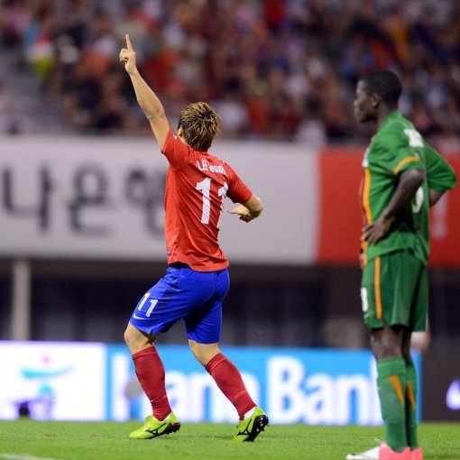 최강희 감독이 이끄는 축구국가대표팀이 15일 저녁 경기도 안양종합운동장에서 잠비아와 친선경기를 가졌다. 이근호가 후반전 두번째 골을 터트린 후 세리머니를 펼치고 있다.