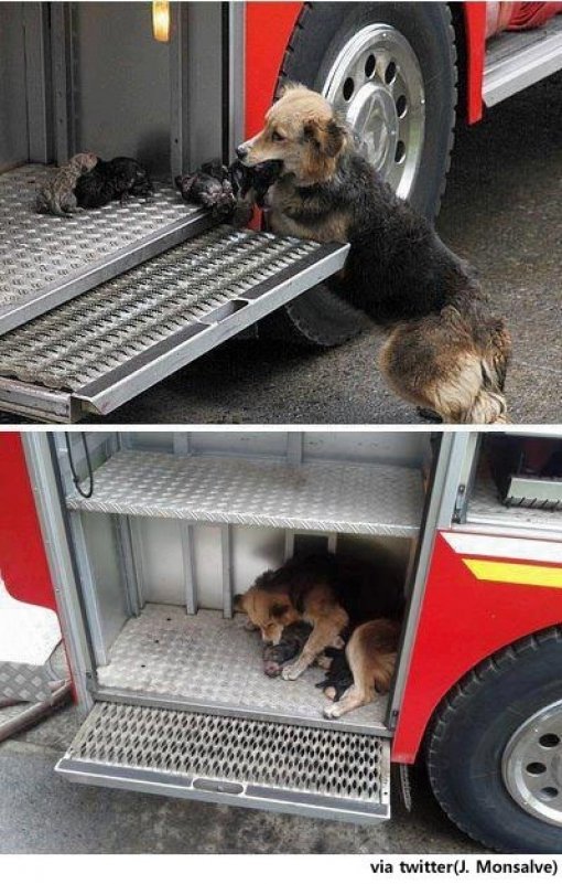 '새끼 구한 엄마 개' 아만다의 사연을 접한 누리꾼들은 "사람보다 낫다", "대단하다", "어머니의 힘이란", "모성애는 위대하다", "소방차에 데려다 놓다니 대박" 등 다양한 반응을 보였다.