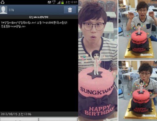 공개된 사진에는 박성광의 휴대전화 메시지가 담겨 있다. 이 메시지는 박성광의 생일을 맞이해 가장 먼저 온 축하 메시지로 첫 문자 메시지의 주인공은 다름 아닌 통신사였다.