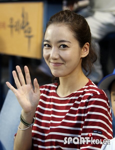 17일 오후 서울 잠실야구장에서 열린 `2012 팔도 프로야구` 두산 베어스와 삼성 라이온즈의 경기에서 탤런트 이소연이 관중석에서 카메라를 향해 포즈를 취하고 있다.