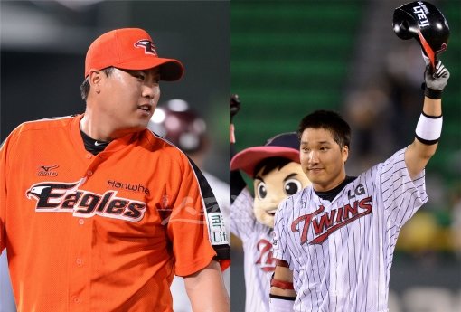 17일 대전구장. LG 타자들이 타격훈련을 시작하자 한화 선발 류현진(25·왼쪽)이 슬그머니 홈팀 덕아웃에 나타났다. 그리고 늘 그랬듯 기둥에 몸을 반쯤 기댄 채 그라운드의 동태를 살폈다. 그때 LG 이진영(32)이 한화 덕아웃 쪽으로 터벅터벅 걸어왔다. ‘더운데 수건 좀 달라’는 게 용건. 그러나 한화 에이스와 LG 중심타자의 만남답게 곧 신경전으로 이어졌다.