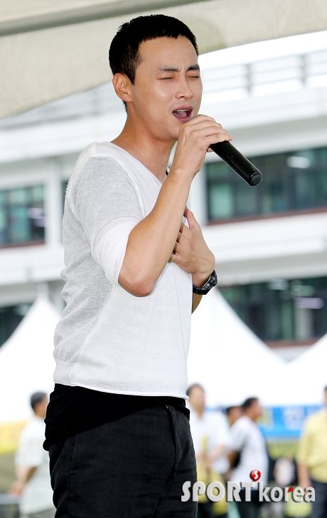 가수 민경훈이 군악대 공연에 참석해 화려한 공연을 펼치고 있다.