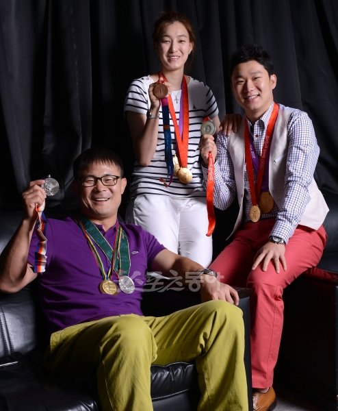 대한민국의 올림픽 출전 역사상 3회 연속 메달리스트는 단 3명뿐이다. 레슬링 자유형의 박장순(44·삼성생명 감독)은 1988서울올림픽 은메달·1992바르셀로나올림픽 금메달·1996애틀랜타올림픽 은메달을 목에 걸었다. 그리고 2012런던올림픽에서 박 감독의 뒤를 잇는 2명의 전설이 탄생했다. 남자사격의 진종오(33·KT)와 여자태권도의 황경선(26·고양시청)이 그 주인공이다. 진종오는 2004아테네올림픽 은메달·2008베이징올림픽 금·은메달·2012런던올림픽 2관왕으로, 3번의 올림픽에서 총 5개의 메달을 획득했다. 황경선 역시 아테네올림픽 동메달·베이징올림픽 금메달·런던올림픽 금메달로 여성최초의 3회 연속 올림픽 메달리스트가 됐다. 한국 스포츠 역사에 길이 남을 3명의 ‘레전드’가 21일 서울 광화문 동아미디어센터에서 만났다.