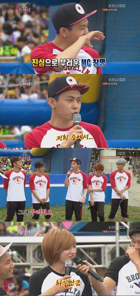 이창명은 틴탑의 니엘에 질문을 돌려 “부러우냐”고 묻자, 니엘은 “하늘만큼 부럽다”고 말해 웃음을 자아냈다.