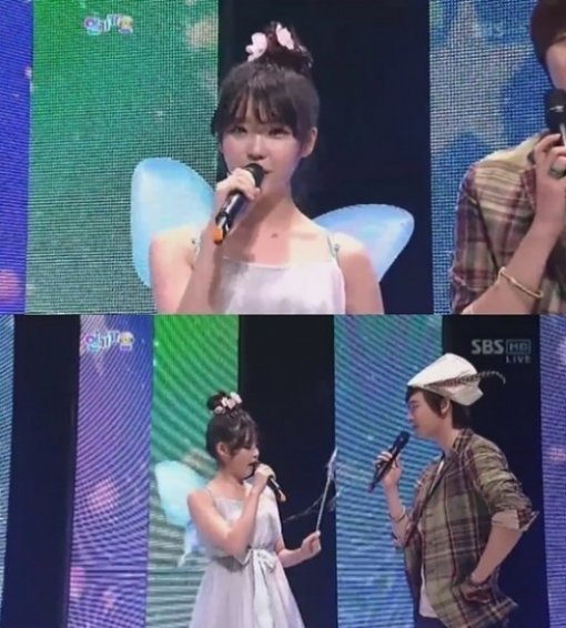 아이유는 26일 방송된 SBS ‘인기가요’에서 깜찍한 팅커벨 의상을 입고 3주 만에 MC로 복귀했다.