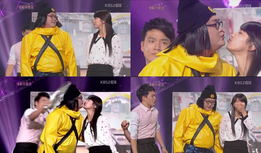하지만 가장 큰 문제는 바로 쟁반이 김준현의 머리를 친 직후다. 쟁반의 소리에 놀란 수지의 몸짓이 오히려 김준현과 거리를 더 좁히는 결과를 초래했다. 두 사람은 키스한 듯 보였고 이내 수지는 소리를 질렀다.