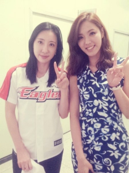 사진에서 정인영은 짙은 색 바탕에 흰 꽃무늬가 들어간 민소매 원피스를 입고 환하게 웃고 있다. 스포츠 아나운서 중 최장신답게 신아람보다도 한결 높은 머리 높이가 눈에 띈다. 신아람은 한화 이글스 유니폼 차림에 머리를 풀어내리고 미소를 띠고 있다.