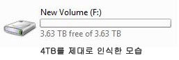 4TB 하드디스크를 설치했는데 용량은 왜 1.63TB?