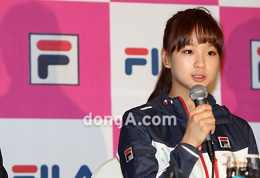 ‘체조요정’ 손연재가 29일 오전 서울 소공동 롯데호텔에서 열린 ‘휠라(FILA) 손연재 선수 후원 협약식’에서 인사말을 하고 있다.