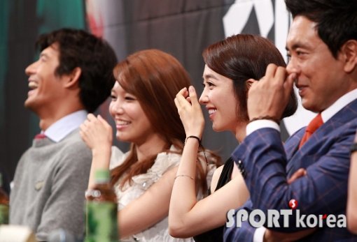 29일 오후 서울 논현동 임피리얼팰리스호텔에서 열린 드라마 tvN ‘제3병원’ 제작발표회에 참석한 주연배우 오지호, 최수영, 김민정, 김승우(왼쪽부터)가 환하게 웃고 있다.