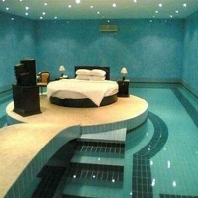 공개된 사진에는 수영장 한 가운데 침대와 TV 등 침실처럼 꾸며져 있는 공간이 있다. 눈으로 보기엔 럭셔리해 보이는 침실이지만 아찔해보이기도 한다.