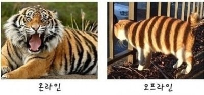게시물에는 온라인과 오프라인으로 나뉘어 누리꾼들을 동물의 모습으로 비유했다. 온라인에서는 성을 내는 호랑이의 모습을 하고 있지만 오프라인에서는 무늬만 호랑이인 조금만 고양이의 모습을 하고 있다.