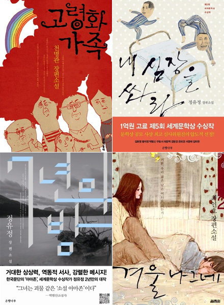 영화화가 추진 중인 인기 소설은 ‘고령화 가족’, ‘내 심장을 쏴라’, ‘7년의 밤’, ‘겨울나그네’ 등이다. 이색적인 소재와 장엄한 이야기로 독자들은 물론 영화계 안팎의 기대가 높다. 배우들도 이미 검증받은 소설의 영화화에 욕심을 내고 있다. 박해일은 ‘은교’에 이어 ‘고령화 가족’을 택했다. 천명관 작가의 이 소설은 영화감독을 꿈꾸는 40대 남자가 고령의 어머니 집에 들어가 살며 겪는 이야기. ‘루저’로 취급받는 가족이 한 사건을 통해 서로의 존재를 다시 느끼는 내용이다. 연출은 ‘우리들의 행복한 시간’ ‘무적자’의 송해성 감독이 맡았다.