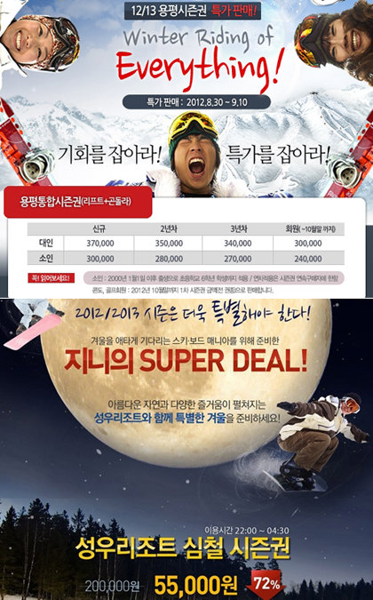 횡성군에 위치한 성우리조트도 마니아 고객을 위한 심철 시즌권 판매에 나섰다. 오후 10시부터 다음날 오전 4시30분까지 밤새 스키와 스노보드를 즐길 수 있다.