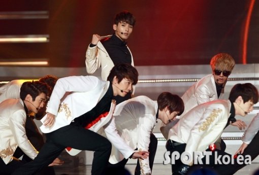 슈퍼주니어가 4일 오전 서울 상암동 누리꿈스퀘어에서 열린 MBC뮤직 `쇼챔피언` 녹화에 출연해 화려한 공연을 펼치고 있다.