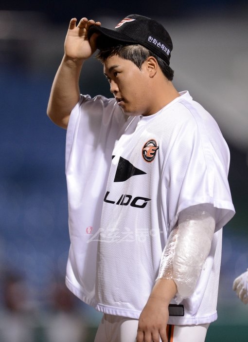 6일 대전 한밭야구장에서 열린 2012 프로야구 8위 한화이글스 대 2위 롯데자이언츠 경기에 선발 등판한 한화 류현진이 8이닝 9탈삼진 무실점으로 승리 투수가 된 후 팬들에게 인사하고 있다.