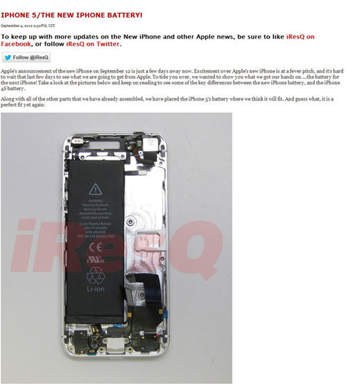 수리전문업체 아이레스큐(iResQ)가 공개한 아이폰5 내부 사진을 살펴보면, 내장 배터리가 더 커졌음을 알 수 있다. 그러나 기존보다 사용 시간이 더 길어질지는 미지수다. LTE의 배터리 소모량이 극심하기 때문이다. 그동안 아이폰 시리즈의 아킬레스건으로 지목됐던 배터리 문제를 이번에는 해결할 수 있을지가 관건이다.