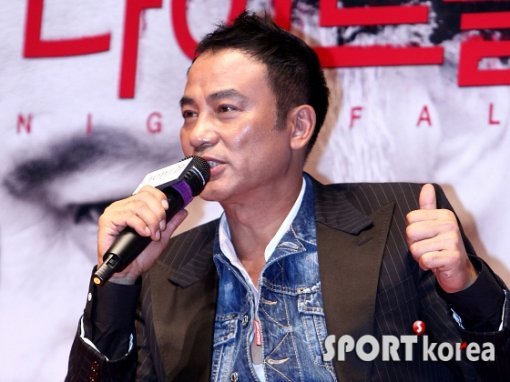 배우 임달화가 12일 오후 서울 자양동 롯데시네마에서 열린 ‘나이트폴’ 언론 시사회에 참석해 취재진의 질문에 답하고 있다.