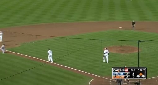 내야 안타가 유력한 상황. 그대로 경기가 진행됐다면 탬파베이는 2사 1, 3루의 찬스에서 다시 공격할 가능성이 높았다.