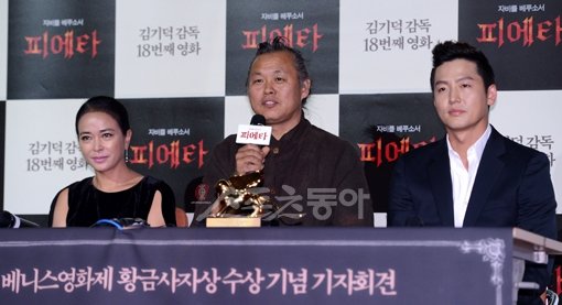 배우 조민수-김기덕 감독-이정진(왼쪽부터). 스포츠동아DB