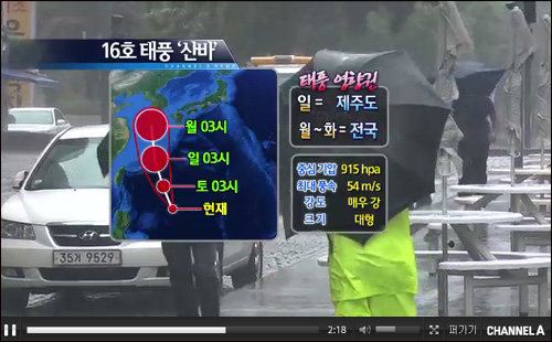 태풍 산바 북상. 사진=채널A 방송화면 캡쳐
