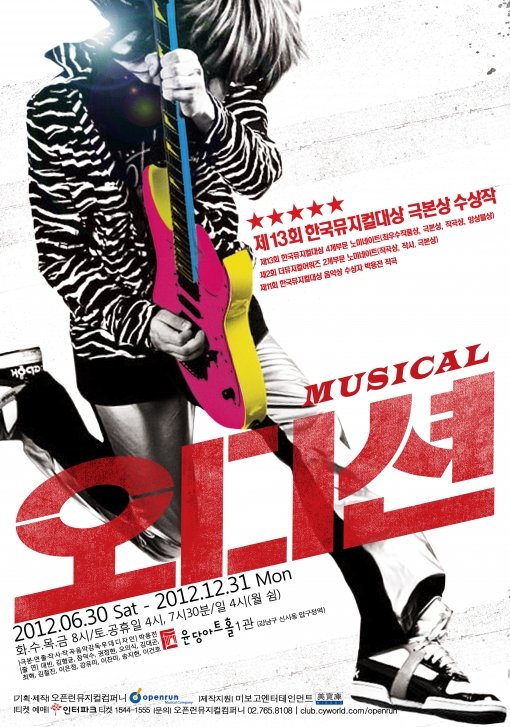 ‘오디션’은 오픈런뮤지컬컴퍼니의 창작 뮤지컬 중 하나로 젊은 뮤지션들이 밴드를 만들고 성장해가는 애환을 진솔하게 담아내 창작 뮤지컬의 모범적인 대본이란 호평을 받았다.