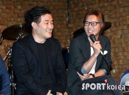 심사위원 송홍섭, 김종서(오른쪽)가 14일 오후 서울 마포구 서교동 홍대 클럽에반스에서 열린 KBS2 ‘탑밴드2’ 기자간담회에 참석해 인터뷰를 하고 있다.