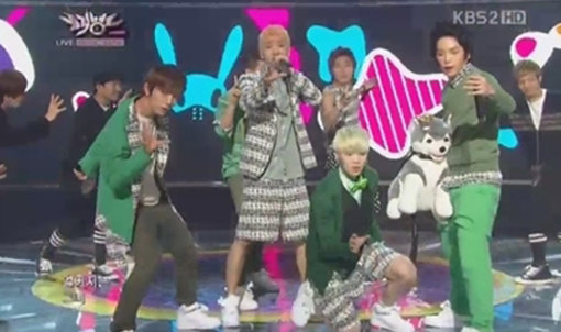 이날 방송에서 비에이피는 매력적인 목소리와 상큼한 춤을 뽐내며 등장했다. 이어 이들은 KBS ‘개그콘서트’의 브라우니 인형을 들고 나와 ‘브라우니 물어’를 외치며 유쾌한 퍼포먼스를 펼쳤다.