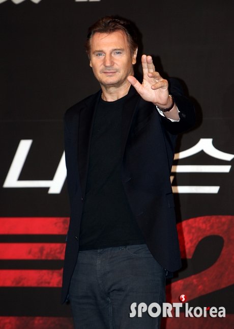 배우 리암 니슨이 17일 오전 서울 한남동 그랜드 하얏트 호텔에서 열린 영화 ‘테이큰2’ 기자간담회에 참석해 포즈를 취하고 있다.