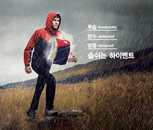 하이벤트는 방수, 방풍, 투습 기능이 탁월한 기능성 소재로 외부의 바람과 수분은 막아주면서 재킷 내부의 열기와 땀을 배출하는 투습성이 뛰어나 마치 재킷이 숨쉬는 듯한 효과를 느낄 수 있다.