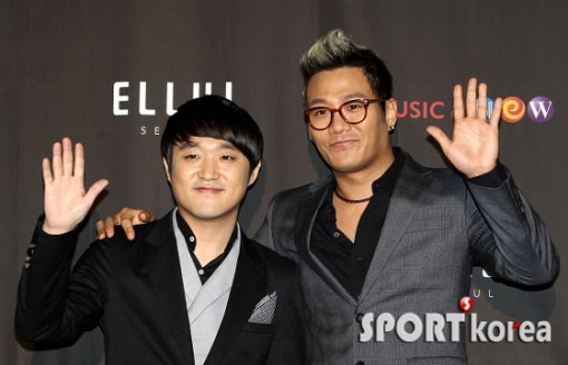 바이브의 류재현, 윤민수(오른쪽)가 18일 오후 서울시 청담동 클럽 엘루이에서 열린 ‘바이브 10주년 쇼케이스’에서 포즈를 취하고 있다.