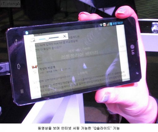 출시 현장에서 사용해 본 옵티머스G는, LG전자가 행사 내내 강조했던 대로 ‘독특한 사용자 경험(User eXperience)을’ 체험하기에는 부족함 없었다. 현존 최고 사양답게 무엇이든 거침 없이 실행하는 성능이 인상적이었다. 한마디로, 터치하면 화면 뜬다. 여기에 LTE 통신까지 맞물리면 인터넷 서핑 속도 역시 현존 최고라 하겠다.
