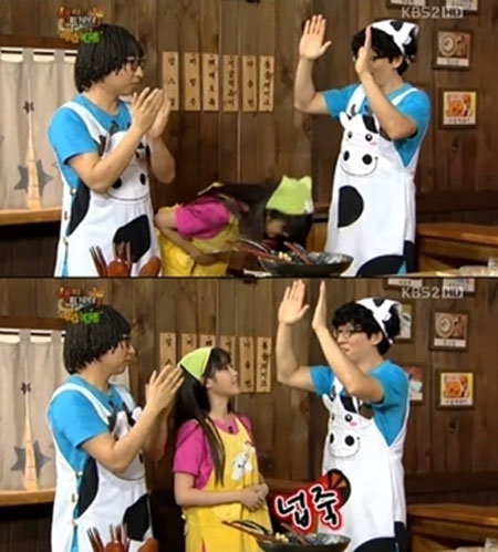 이날 아이유가 소개한 ‘아이유식’은 제 8호 메뉴로 선정되었다. 이를 MC 유재석이 축하해주려고 아이유에게 하이파이브를 청했지만 아이유는 하이파이브 대신 넙죽 인사했다. 서로 타이밍이 맞아 민망한 상황이 연출된 것.