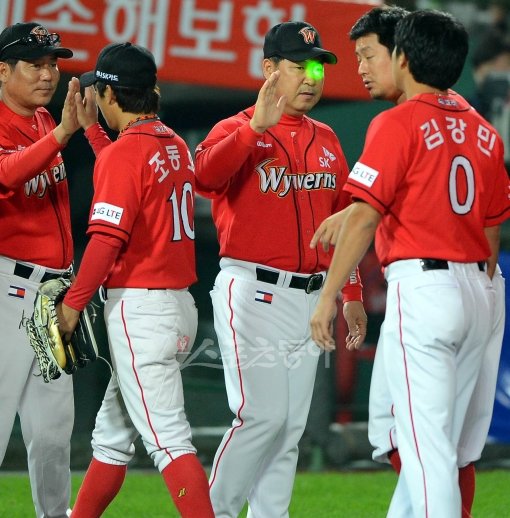 19일 이만수 감독 얼굴에 쏴진 레이저 빔 테러. 스포츠동아DB