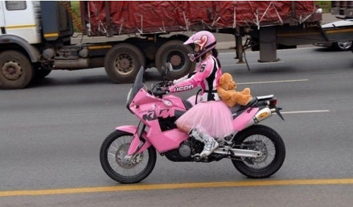 또 이 여성은 핑크 마니아로 추정된다. 의상부터 헬멧, 오토바이까지 모두 핑크색으로 깔맞춤 한 것.