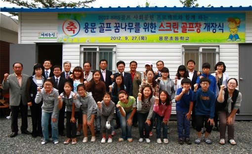 SBS골프와 스크린골프 전문 업체 알디텍은 27일 충남 금산군 용문초등학교를 찾아 골프꿈나무를 위한 스크린골프장 개장식을 가졌다.
