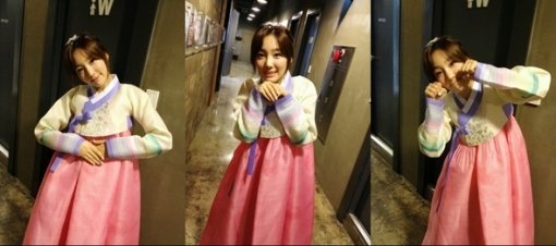 태연이 직접 올린 세 장의 사진에는 한복을 입고 애교를 부리고 있는 태연의 모습이 담겨있었다.