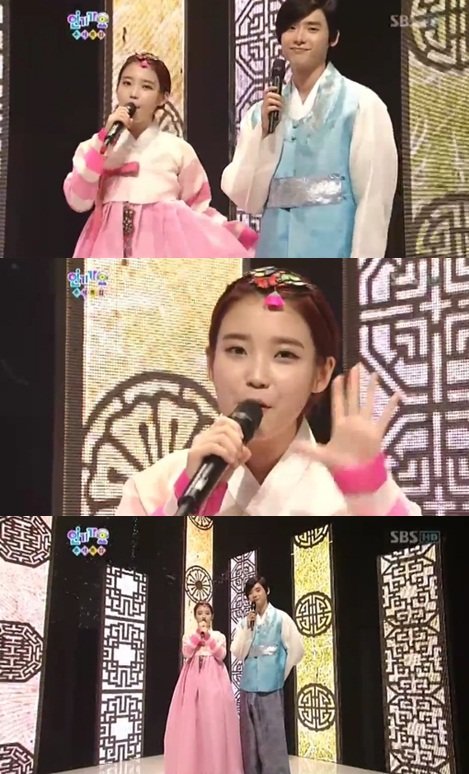 30일 방송된 SBS ‘인기가요’에서 MC 아이유 이종석은 추석을 맞아 한복을 곱게 차려입고 진행석에 섰다.
