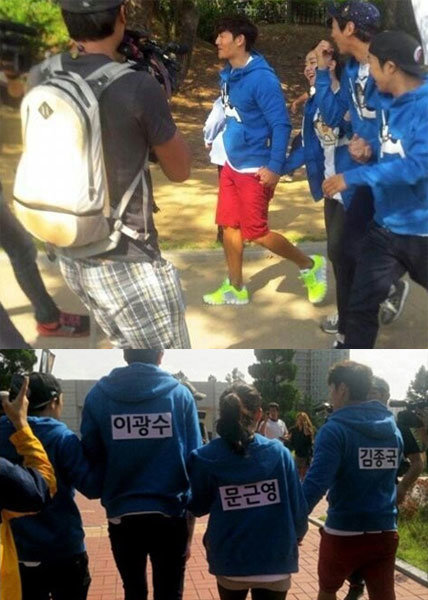 공개된 사진에는 문근영이 런닝맨 멤버 하하, 이광수, 김종국와 함께 이름표를 붙이고 촬영하는 모습이 담겨있다.