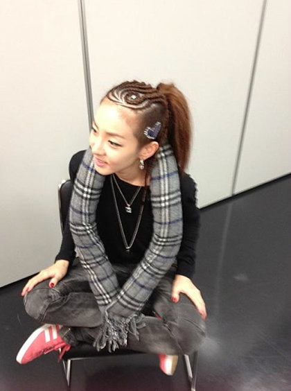걸그룹 투애니원(2NE1) 산다박이 콘로우 헤어를 선보여 화제다.