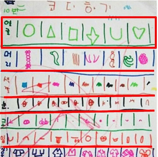 공개된 사진에는 요즘 아이들은 이해할 수 없는 난해한 그림이 그려진 스케치북을 볼 수 있다.