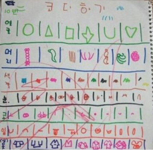 해당 사진은 예전 여자 아이들이 즐기던 수제 옷 입히기 놀이를 찍은 것. 스케치북에 다양한 얼굴, 머리, 눈과 코, 입 형태와 색을 직접 그려 코디하는 장면을 보여주고 있다.