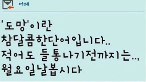 공개된 문자메세지 내용에는 “‘도망’이라는 단어는 참 달콤한 단어입니다. 적어도 들통나기 전까지는. 월요일날 봅시다”라는 내용이 담겨있다.