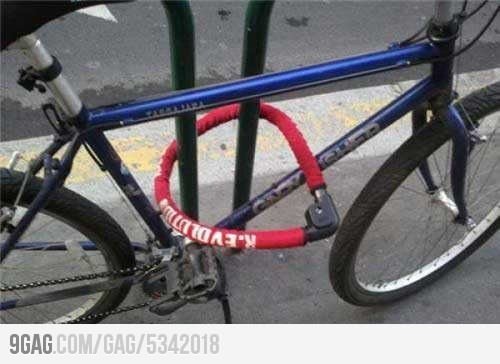 하지만 자세히 보면 주인의 실수가 있다. 자전거와 기둥을 함께 채워야 할 자물쇠가 기둥에만 채워져 있는 것을 확인할 수 있다. 자물쇠가 아무런 의미가 없는 셈이다.