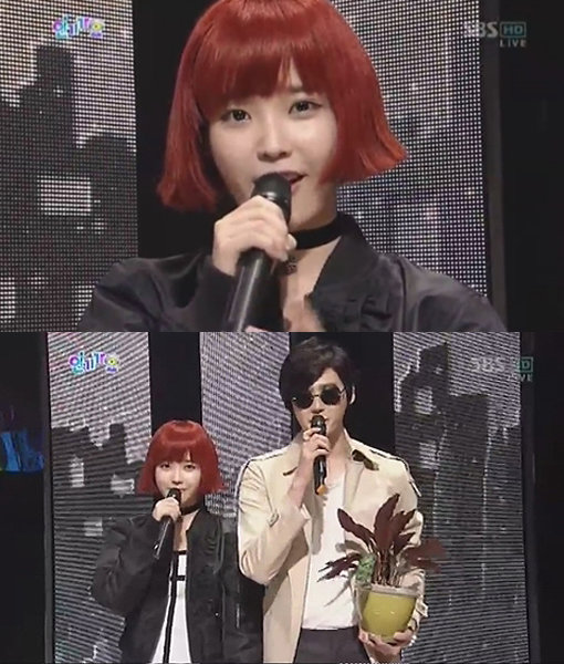 7일 방송된 SBS '인기가요'(MC 아이유 이종석)에서 MC들은 영화 '레옹' 주인공으로 분했다.