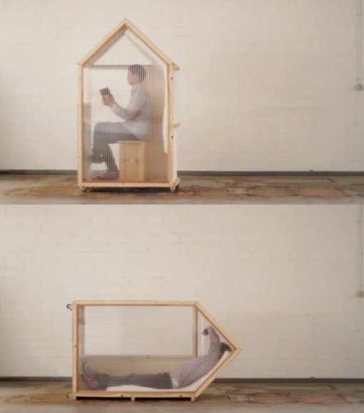 '1평방미터의 집'은 180㎝x70㎝ 크기에 무게는 40㎏으로 방수 처리까지 되어 있다.