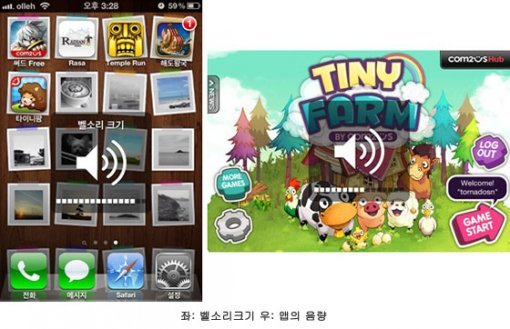 음량 조절 버튼은 아이폰의 음량을 크거나 작게 조절하는 기능을 한다. 주변에 울릴 만큼 큰 소리부터 완전한 무음(無音)까지, 사용자의 취향에 맞춰 음량을 조절할 수 있다.