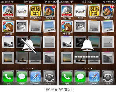벨소리/무음 전환 버튼은 아이폰의 모든 음성을 끄는 기능을 한다. 벨소리 크기와 앱의 음량 둘 다 동시에 꺼지는 점을 주의 바란다. 벨소리/무음 전환 버튼을 다시 올리면 음량이 이전상태로 돌아간다.